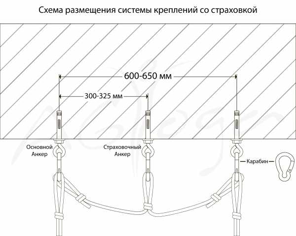 Страховочный анкер устанавливается между основными крайними анкерами (см. «Схему размещения системы креплений со страховкой»)