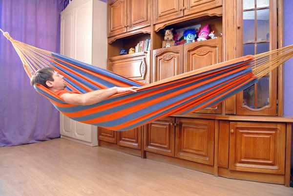 Итак, допустим вы уже осознали всю прелесть от подвешивания гамака внутри вашего жилища, что дальше? Прежде всего стоит определиться с выбором самого гамака и местом его установки в вашем доме. Мы не рекомендуем использовать гамак с планками, для установки в доме лучше подойдёт гамак без планок на основе хлопка или туристический гамак. Тем не менее если у вас уже есть гамак с планками вы всё равно можете его повесить, главное правильно рассчитать его месторасположение, так чтобы планки не представляли угрозы для обоев и мебели вашего дома.