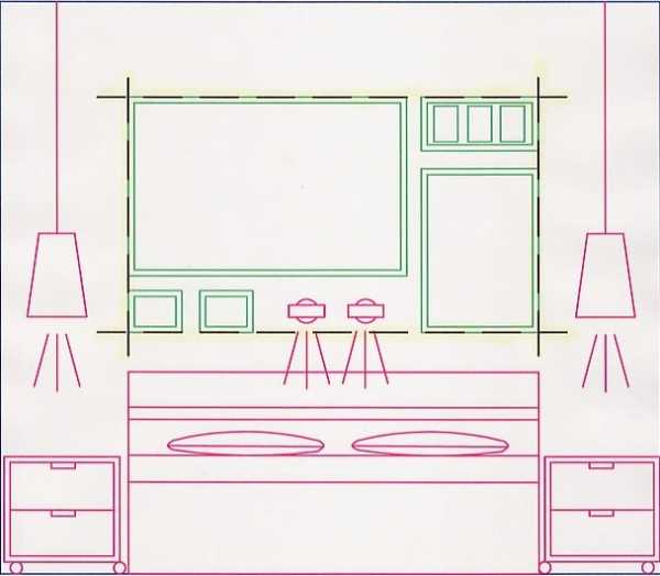 Размещение картин довольно трудоемкий и ответственный момент, поэтому попробуйте мысленно, или при помощи друзей развесить картины на стене и только потом начать их закреплять. Можно попробовать сделать это сначала на компьютере, виртуально. Для этого сфотографируйте стену и сфотографируйте картины, затем в фотошопе или другой программе попробуйте их развесить. Нельзя размещайте картины «по росту» – это дурной вкус, квартира не армия, чтобы размещать их в порядке убывания.