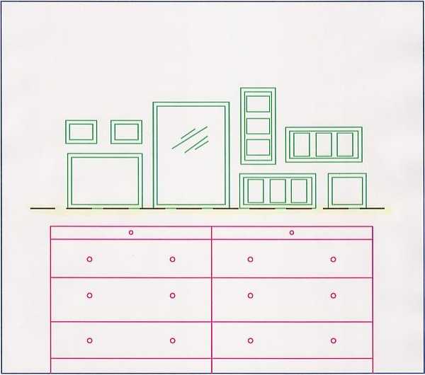 Примеры как можно повесить группы картин на стенуКартины одинакового размера и примерно одной тематики, нет лучшего варианта, как разместить их в один ряд. Но, возможно размещение их и в несколько рядов и, даже в шахматном порядке. Если картина довольно крупная, с массивной рамой, желательно не «затенять» ее стоящей рядом мебелью, какая бы она шикарная не была. Как замок не будет смотреться в плотной городской застройке, как и шикарная картина не будет смотреться например рядом со шкафом.