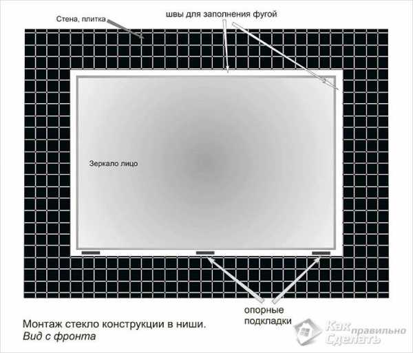 При установке нужно аккуратно действовать, чтобы не повредить поверхность зеркала.