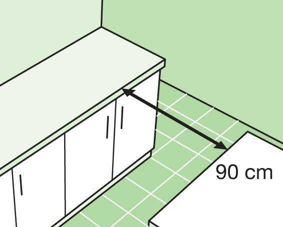 90 сантиметров – это минимально допустимое расстояние от стола к гарнитуру