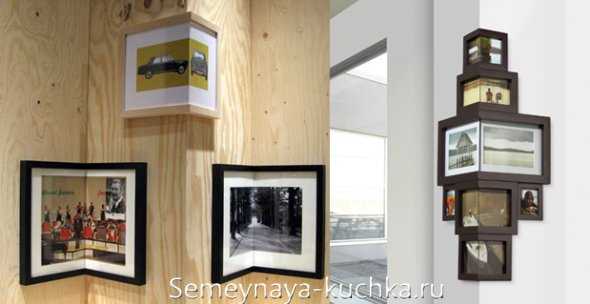 Дабы задекорировать углы, при этом не тратя много физических усилий и денежных средств, можно использовать рамки. Таким образом, столь “скучный” угол приобретет яркий акцент и “заиграет” совершенно по-новому.