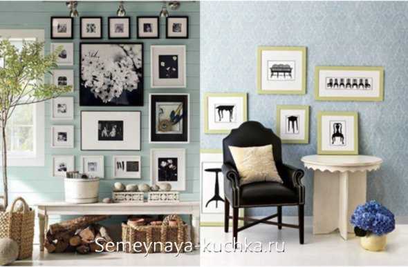 Важно! В данном способе оформления следует четко ограничить место, где будут размещены рамки.