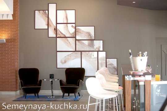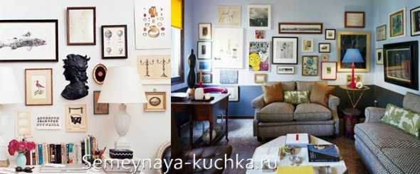 Кроме прочного крепления, огромное значение в формировании общего дизайна интерьера имеет расположение картин и фотографий на стене. На сегодняшний день самыми популярными являются следующие способы.