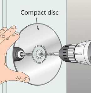 Как просверлить ровное отверстие? Используйте старый CD-диск. Приложите его к стене, в центральное отверстие установите сверло. В отражении диска следите за тем, чтобы сверло располагалось и шло ровно (параллельно полу).