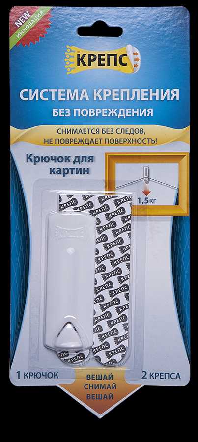 Система представляет собой пластиковый элемент, тыльная сторона которого плоская и имеет клеевой слой. Поверхность стены должна быть гладкой и ровной. Тогда получится обеспечить высокую надежность крепления. Нижняя часть устройства является выдвижной и имеет несколько рядов маленьких крючков. Воспользоваться этой системой очень просто даже впервые. Необходимо удалить защитную ленту с липкой ленты и приклеить ее к изнаночной стороне крючка. Теперь нужно удалить защитную ленту со второй стороны и прислонить крючок к стене. Плотно прижмите на протяжении 30 секунд. Теперь можно вешать картину. Максимальная нагрузка на один «крепс» составляет 1,5 кг. Чтобы повесить более габаритный предмет, используйте несколько крепежей. Главное, расположить их равномерно, чтобы обеспечить плотное прилегание картины к стене.