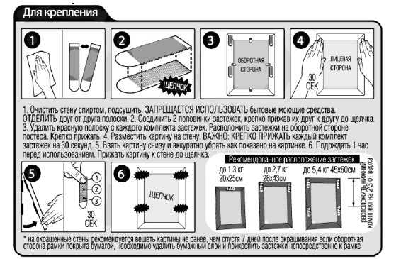 Данные застежки сделаны так, что вы сможете менять размещение картин. Дабы удалить рамку аккуратно — так, чтобы не осталось следов на поверхности, следует выполнять следующие действия: