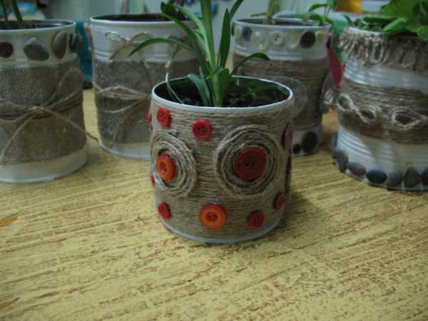 Все мы часто покупаем продукты в жестяных банках: огурцы, детское питание, томатную пасту, и так далее. Из пустых жестяных банок можно сделать отличный декор банок своими руками: вазочку для кухни, подставку для ложек и вилок, органайзер для карандашей. Если использовать простой шпагат, и любой имеющийся клей.