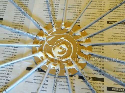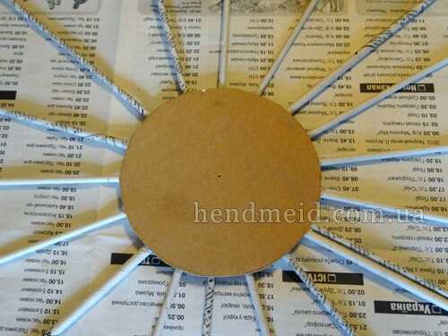 Приклеиваем трубочки и наливаем сверху немного клея. Сверху накрываем вторым кругом, и ставим какой-то груз – для того, чтобы лучше приклеилось.