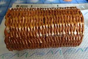 - Послойное плетение – плетение несколькими прутами, одновременно за несколько стоек. Причём они направлены так: 1-й прут – за 1-ю стойку, 2-ой – за 2-ую, 3-й – за 3-ю, и так далее. Когда кончается круг, то каждая трубочка идёт за следующий столбик – до окончания всей связки трубочек. Дальше идёт новый аналогичный слой, концы прячутся вовнутрь работы.