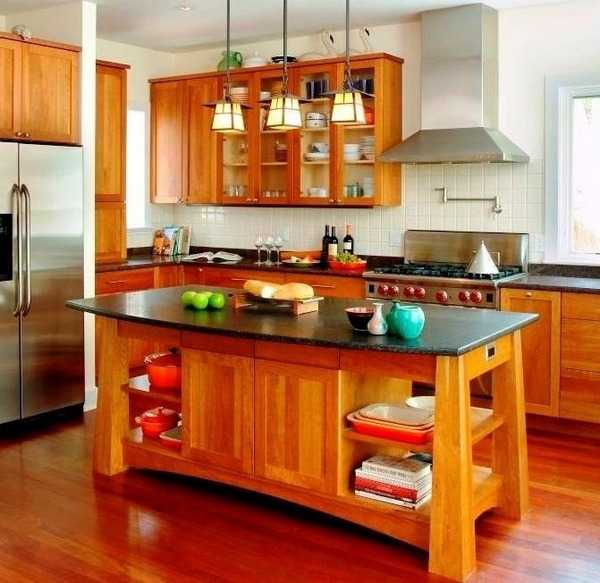 С помощью этого предмета мебели возникает возможность для хранения всевозможной кухонной утвари. К тому же, с одной её стороны при необходимости можно расположить полки или шкафчики.