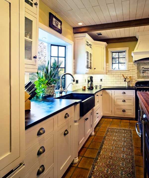 Идеальное расположение – мойка находится в углу, но это допускается только при П-, и Г-образной планировке. Когда кухня достаточно узкая и гарнитур можно расположить только по линейному принципу, мойку устанавливают по всем принципам треугольника.