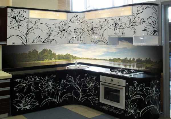 Этот вариант подходит как для маленьких кухонь с мини-гарнитурами, так и для больших и просторных. В большой кухне свободное пространство обычно отводится под обеденную зону.