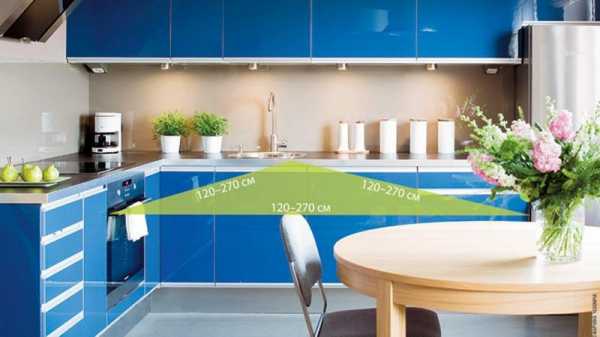 Правило треугольника в расположении кухонной мебели – одно из удобных решений