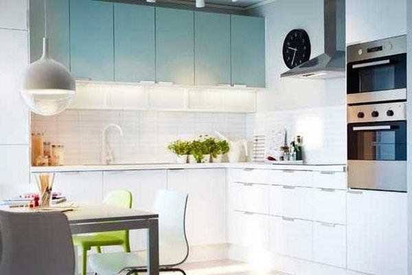 Так как кухня имеет небольшое пространство, то придётся прибегать к следующим секретам:- Использовать функциональную мебель. Дверцы подойдут больше всего поднимающиеся вверх или раздвижные.