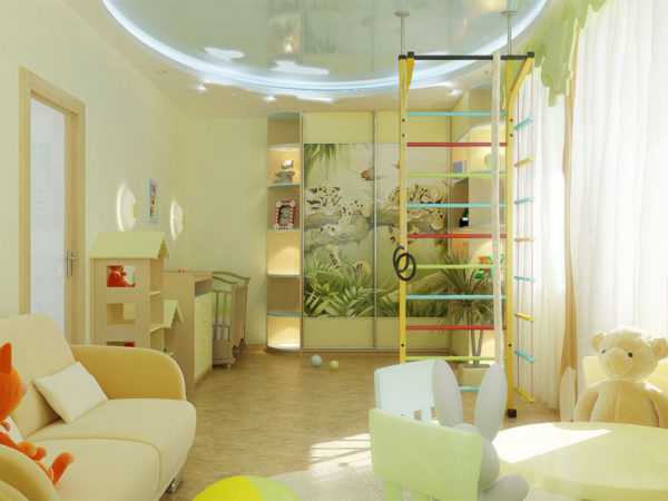 Не рекомендуется использовать натяжной потолок в детской зоне. Если у вас уже есть натяжной потолок, то не спешите его убирать: несмотря на протест специалистов, большого вреда для детей материал потолка не несет.