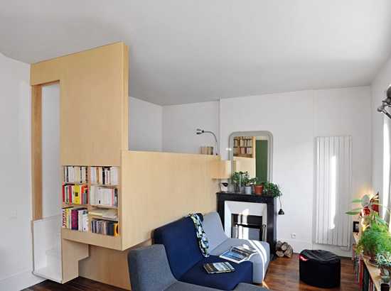 | Вертикальное | Изменения расположения мебели по высоте. | Спальную зону размещают практически под потолком, а под ней может располагаться рабочий уголок и даже диван для отдыха. Можно использовать кровати с подъемным механизмом. Также для спального места можно сделать подиум и использовать его в качестве ящика для белья. |