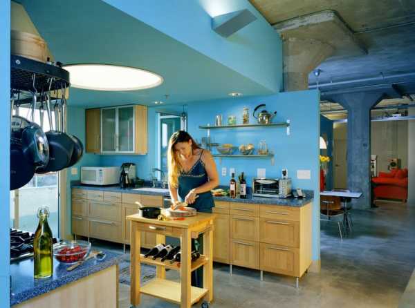 - Выделение функциональных частей в комнате. Данный способ используется тогда, когда в одном помещении нужно совместить несколько функциональных участков, например, обособить кухонный сектор в квартире студии, либо выделить рабочий уголок в спальне. Такой прием часто используют в малогабаритных квартирах либо просторных комнатах, совмещающих несколько функций.