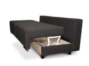 Для того, чтобы его разложить, надо также вытянуть нижнюю часть, которая имеет удобные колесики. В этом случае, местом для головы является спинка, которая также раскладывается, образуя ровную поверхность, напоминающую простую кровать. Такой вариант отлично подходит для детских комнат, кухни и прочих помещений, где требуются диваны небольших размеров.