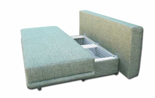 При раскладывании спальное место получается ровное, не изменяясь по высоте. Ширина может варьироваться от 60 до 180 см, а длина, как правило, стандартная – 200 см. Некоторые модели оснащаются нишами для белья. Также в комплектацию могут входить различные подушки.