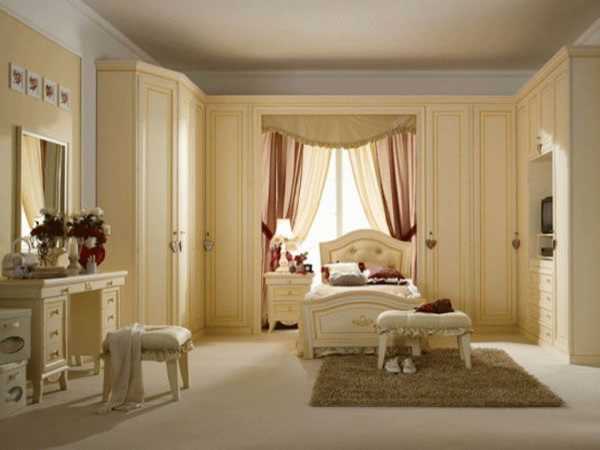- большие размеры комнаты дают больше возможностей. В этом случае кровать можно поставить и по диагонали.