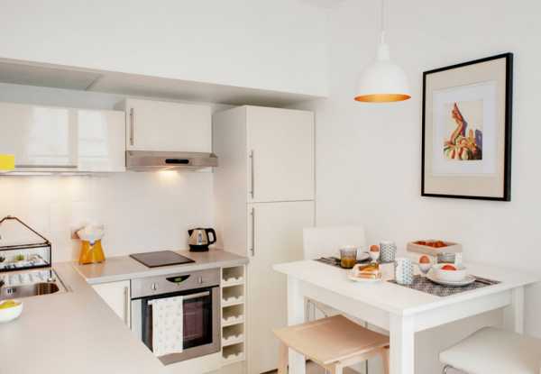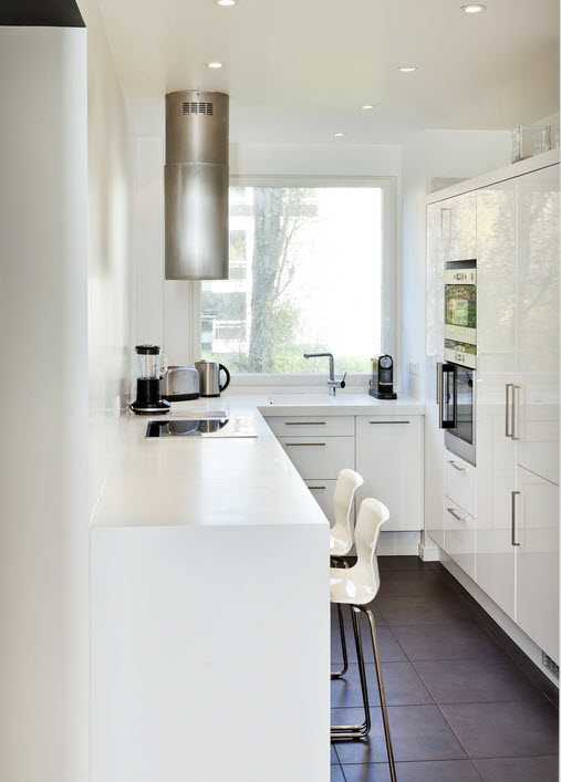 Как вариант, можно почерпнуть интересные и полезные идеи из оформления европейских тини хаусов и мини-квартир. При этом дизайн кухни может не ограничиваться лишь одним помещением. Попробуйте разместить технику недалеко от кухни, например в коридоре. Если правильно поэкспериментировать с пространством, вы добьетесь желаемого, создав кухню своей мечты!