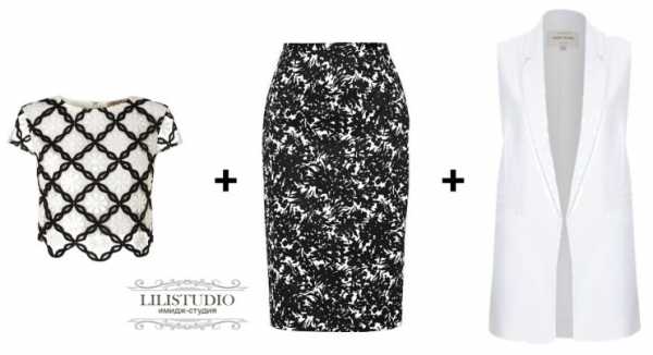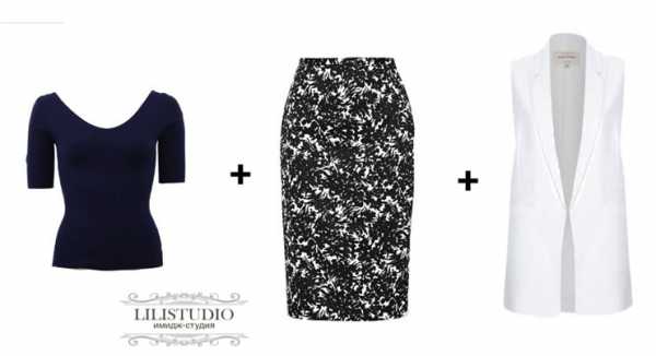 Юбки от костюмов сочетайте с блузами, рубашками и другими жакетами. Можно купить ультра-модный жилет, который будет соединять юбку и блузу в единый комплект, как на фото.