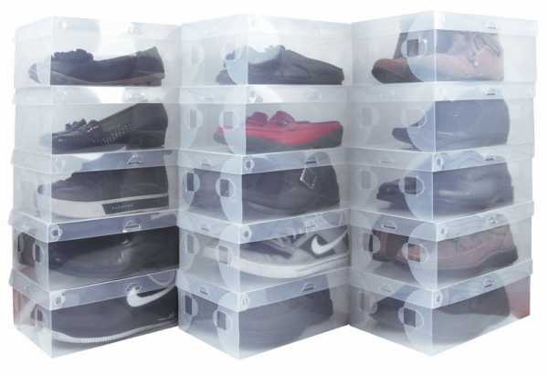 - Заменяем картонные коробки на пластиковые прозрачные и фото уже клеить не нужно. PS Специальные коробки с сеткой Ikea для хранения обуви я лично не люблю — мне в них совершенно ничего не видно.