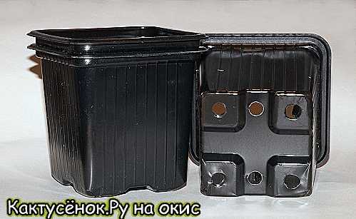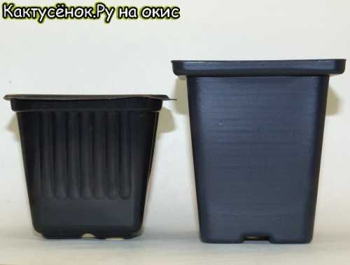 мичны. Квадратные горшки безусловно удобнее в плане экономии места, правда и стоят на порядок дороже. Как альтернативу для пересадки кактусов можно использовать обычные горшки для рассады(фото с лева). Несмотря на свою недолговечность, (в среднем срок эксплуатации 2 — 3 года), эти горшки имеют массу преимуществ. Копеечная цена, разнообразие размеров, компактность при установке, а главное их не проблема купить в отличии от специальных «кактусных» горшков. Можно подобрать горшок необходимый не только по диаметру, но и по глубине, что крайне важно при посадке кактусов с длинным стержневым корнем, таких как астрофит