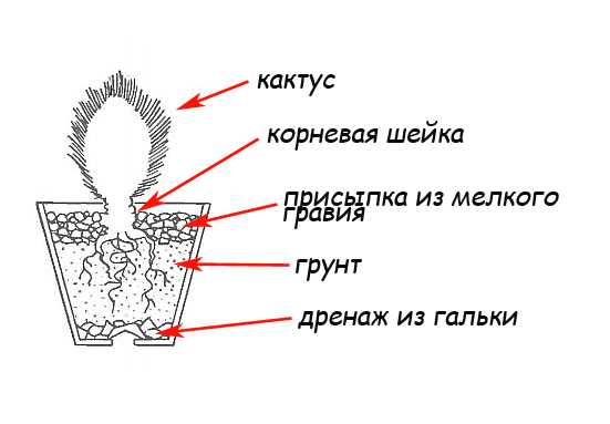Правильная посадка кактуса — небольшой горшок, верхний и нижний дренаж