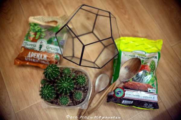 В первую очередь понадобится широкий и низкий аквариум или террариум. Можно найти подходящий в цветочном магазине или в том, где продаются товары для животных (подойдет аквариум для рыбок). В качестве дренажа можно использовать черепки битой глиняной посуды, керамзит, декоративные камешки или смесь всего перечисленного. Если добавить еще и уголь, то воздух в середине аквариума будет всегда свежим. Почвосмесь готовится самостоятельно или покупается готовой. И последнее, что понадобится, это, конечно же, сами растения. Рекомендуется комбинировать кактусы и суккуленты, выбирая виды, несколько разные по форме, цвету и размеру, тогда они красиво будут дополнять друг друга, хотя здесь уже стоит полагаться исключительно на собственный вкус. Тем самым следует руководствоваться и при высадке нескольких кактусов в один горшок.