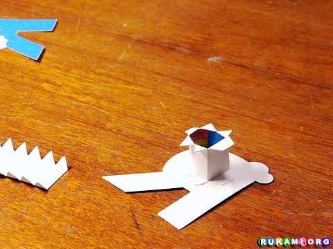 - Полученные объемные заготовки прикрепляем к картонному фасаду с помощью клея.