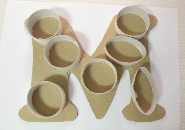 Для таких букв хорошо подойдет не очень плотный гофрированный картон. Такой картон обычно используется для изготовления различных коробок и для упаковки. Он хорошо держит форму и его достаточно просто резать. Еще вам не стоит выкидывать тубы из-под бумажных полотенец (или туалетной бумаги), хотя их можно заменить (винными пробками, например).