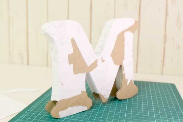 10. В результате вся буква должна быть покрыта плотным слоем бумаги. Когда клей высохнет и затвердеет, получится довольно прочная конструкция.