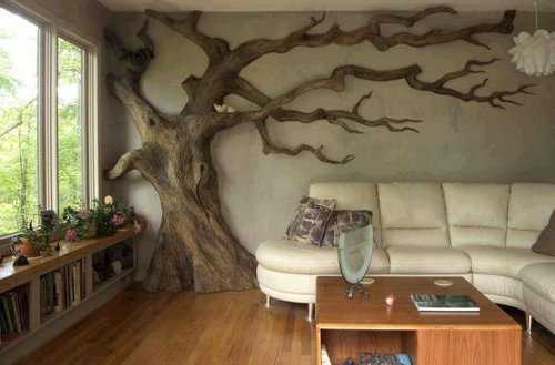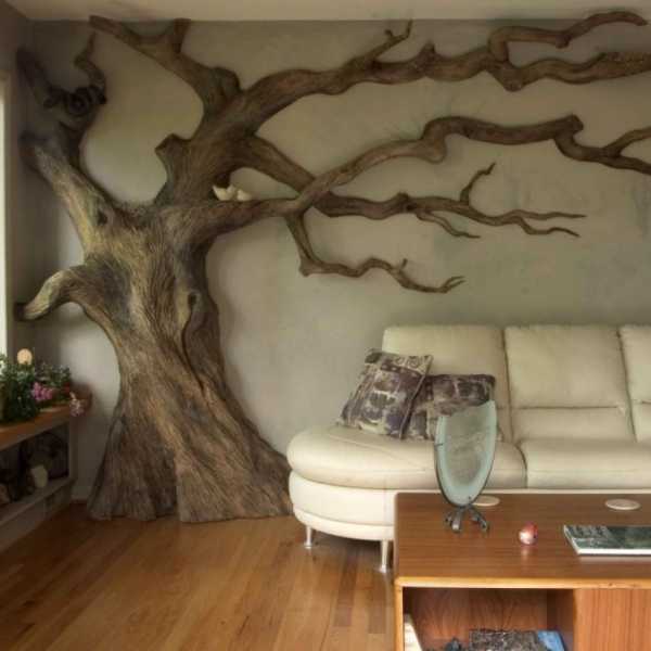 Важно! Позаботьтесь заранее о специальной подставке для такого своеобразного деревца, ее можно вылепить непосредственно на стене. Получиться что-то вроде оригинальной объемной фрески.