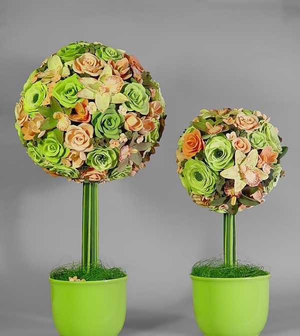 Есть отдельный вид искусственных деревьев – топиарии. Это небольшое деревце в горшке может быть сделано из множества материалов.