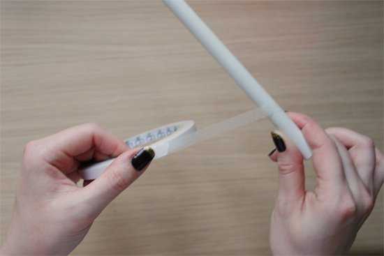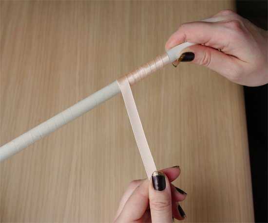 - Возьмите ленточку нужного цвета и обмотайте ею ствол поверх скотча.