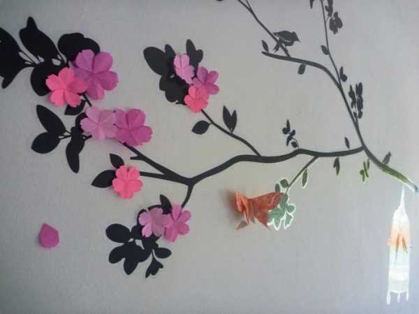Картонные бабочки и птички станут прекрасным дополнением к «ожившей» стене