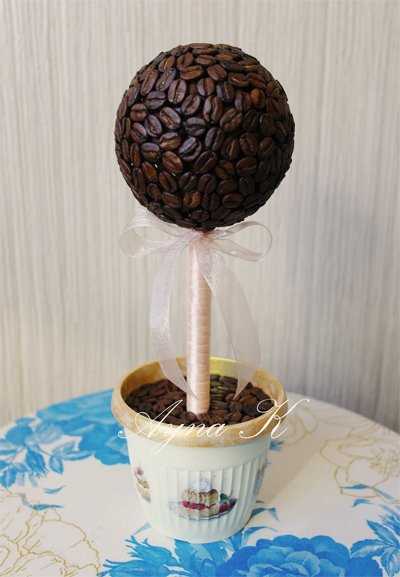 Но самый восхитительный топиарий – из кофейных зерен. Посмотрите пошаговый мастер-класс с подробными фото: