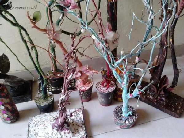 Из пластика делаются и маленькие декоративные деревца. Пошаговые инструкции:
