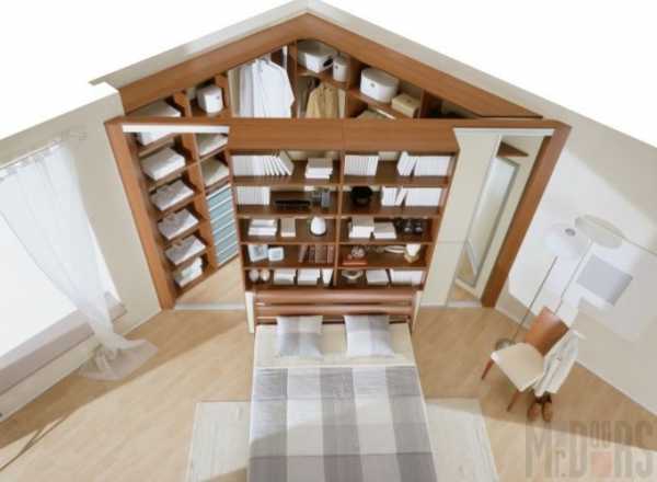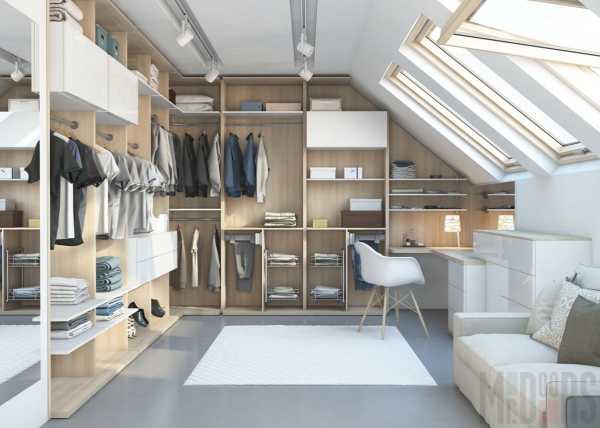 Если вы живете в частном доме с мансардой, сделать удобную и просторную гардеробную своими руками будет по-настоящему просто. Мансардный этаж идеален для этих целей. Гардероб в данном случае разрешается размещать и возле низкой, и возле высокой стенки. Второй вариант выглядит предпочтительнее. У высокой стены несложно смонтировать полноценную систему, в которую поместится все что угодно. С низкой стенкой придется повозиться, чтобы правильно подобрать размеры гардеробной. Здесь важно запомнить одно. Высота гардероба не должна быть меньше 100 см. Если делать приспособление с меньшим параметром, реального преимущества от его применения вы не получите.