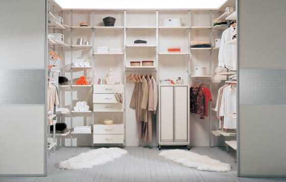 Также популярным является вариант устройства системы для хранения одежды в кладовке (чулане). Если эти помещения находятся в жилой комнате, их придется отгородить от нее (иначе все вещи будут выставлены напоказ). Необязательно устанавливать полноценную дверь. Достаточно отгородить кладовку ширмой либо элементарной перегородкой, возведенной из гипсокартона.