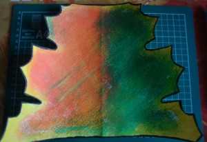 2. Раскрашиваем лист губкой, чтобы красиво смешать цвета.