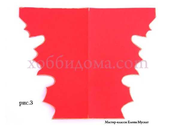 Возьмите лист цветной бумаги формата А4, сложите его вдоль, наложите шаблон и обведите (рис.2). Если у вас будет желание, контур можно сделать золотым.