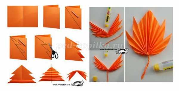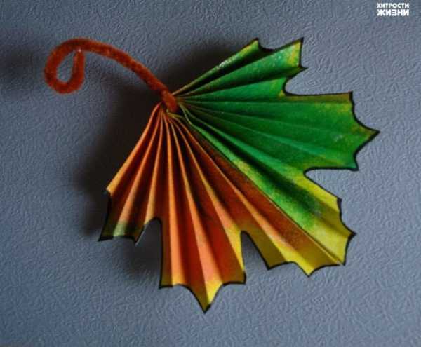 Кленовый лист из цветной бумаги гармошкой