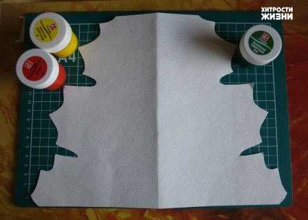 1. Складываем лист пополам и вырезаем фигуру с помощью шаблона.
