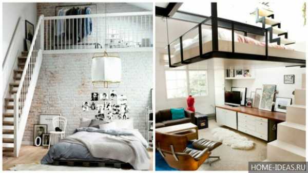 - На «второй этаж» ведет лестница. Она может быть винтовой, прямой, двухмаршевой. Если габариты комнаты не позволяют установить стационарную модель, устраивают складную – выглядит она достойно.
