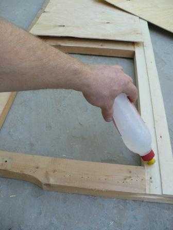Склеиваем шпунтованные углы, промазав универсальным клеем, при сборке угольником проверяем перпендикулярность.