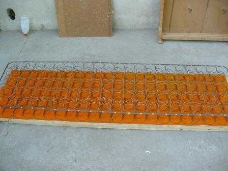 По размерам верхней части пружинного полотна вырезаем палас с припуском в 4-5 см с каждой стороны.